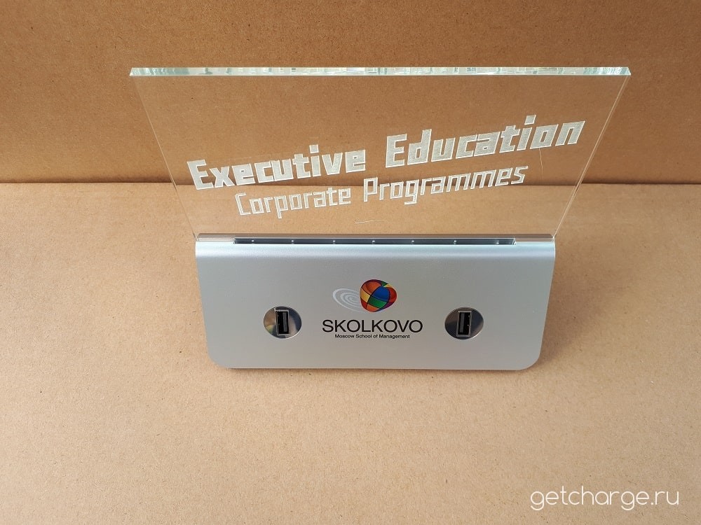 Способ брендирования: полноцветная УФ-печать на основание с 2-х сторон. Табличка из акрила с гравировкой.
