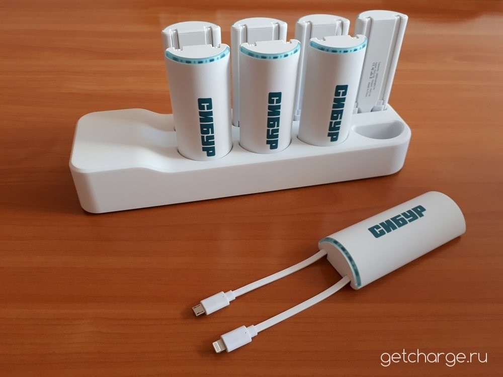 Краткая справка по оборудованию: 8 портативных зарядок емкостью 4000 мАч. Каждый power bank оснащен 2 встроенными кабелями. Аккумуляторы с магнитными контактами можно зарядить только от станции. Доступны цвета: черный и белый.