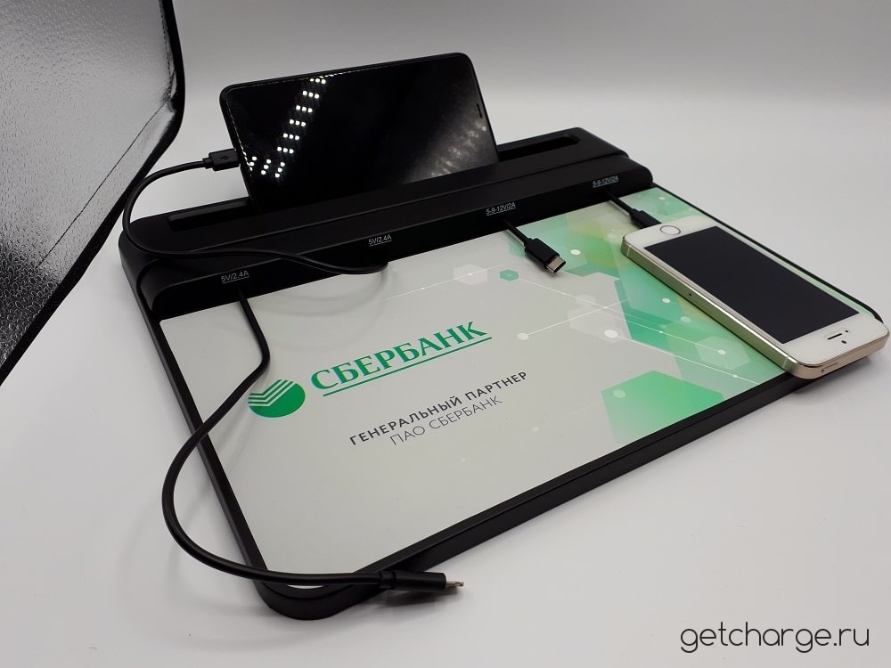 Метод нанесения: полноцветная УФ-печать на аккумуляторах. Зарядная станция со встроенной светодиодной подсветкой брендирована пленкой бэклит.