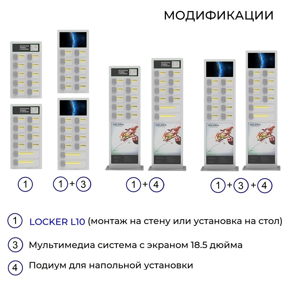 Locker (Шкаф) L10 - зарядный аппарат, изготовленный в формате шкафа на 10 сейфовых изолированных ячеек для зарядки и хранения смартфонов.