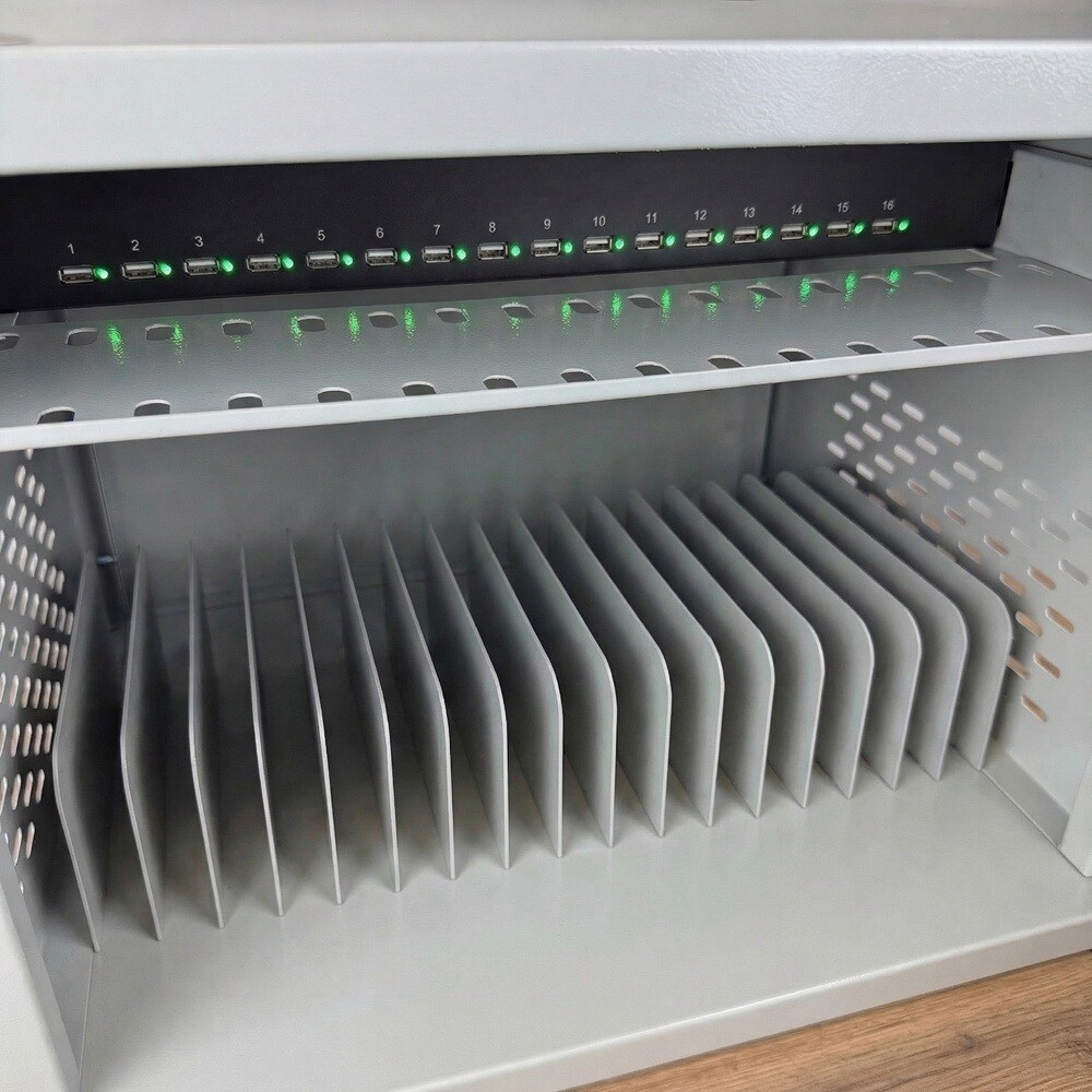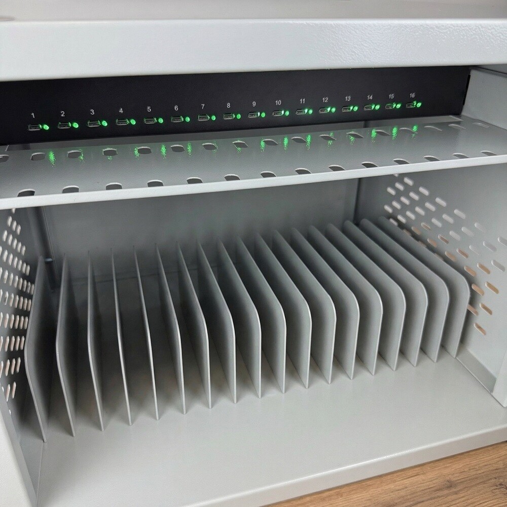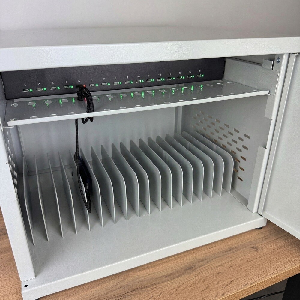 Назначение: для одновременной компактной зарядки 16 мобильных устройств. Подойдет для организаций, которые в своей деятельности используют большое количество носимых гаджетов, которые нужно периодически заряжать и хранить.