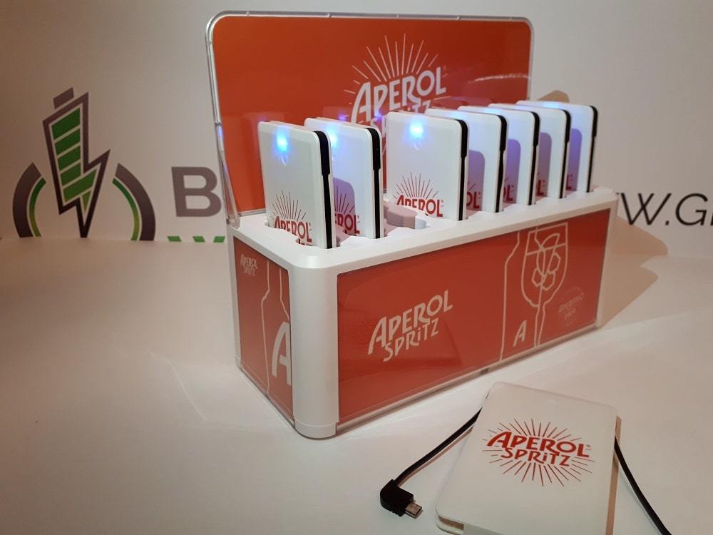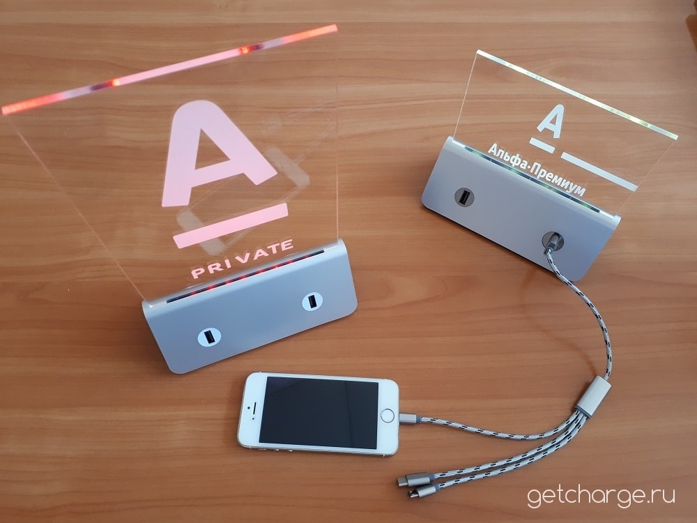 Метод нанесения: полноцветная УФ-печать на аккумуляторах. Зарядная станция со встроенной светодиодной подсветкой брендирована пленкой бэклит.