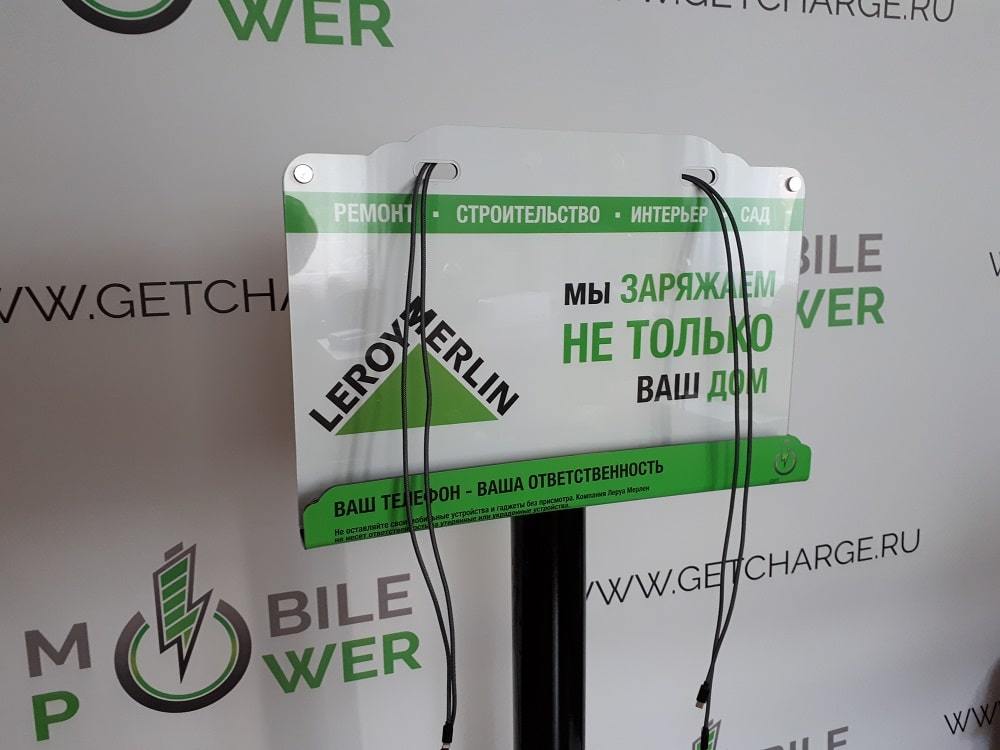 Заказчик: Леруа Мерлен Восток, установка в клиентских зонах магазинов для повышения уровня сервиса и возможности экстренной зарядки телефонов.