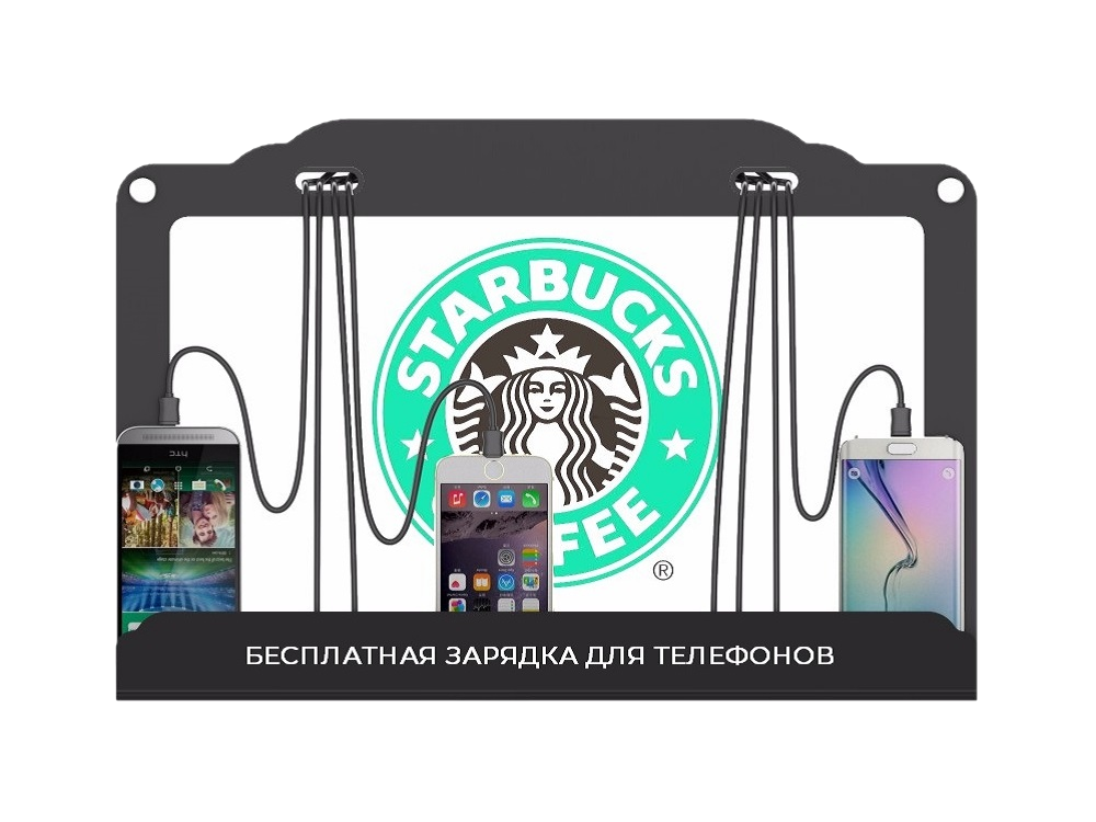 Устройства, созданные для эксплуатации в сегменте HoReCa, но быстро получившее признание и в других отраслях бизнеса. Зарядки оснащены мощными аккумуляторами для работы без розетки. Для продвижения продуктов и услуг зарядные устройства оснащены тейбл тентом для листовки либо HD экраном для трансляции фото/видео контента.